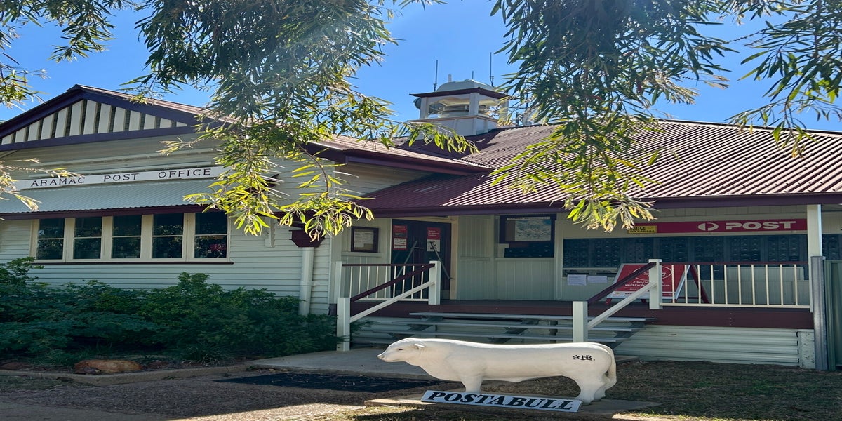 Barcaldine was our next stop. We have been practising our pronunciation (“It’s BarCALLdin, not BARcalDEEN”), and as we were visiting on a Sunday there were two café/bakeries and not much more open. Barcaldine has five pubs (all closed, some long-term) on its main street, is home to the Tree of Knowledge outside the railway station, with a great structure over the dead tree (poisoned in 2006) that was the birthplace of the Australian Labor Party and Australian Workers Union in the 1890s during the Shearers’ Strike. We had a bit of a hiccough here, as on our drive into town we copped a stone to the windscreen from a passing road train, resulting in an ever-growing crack across the shield.